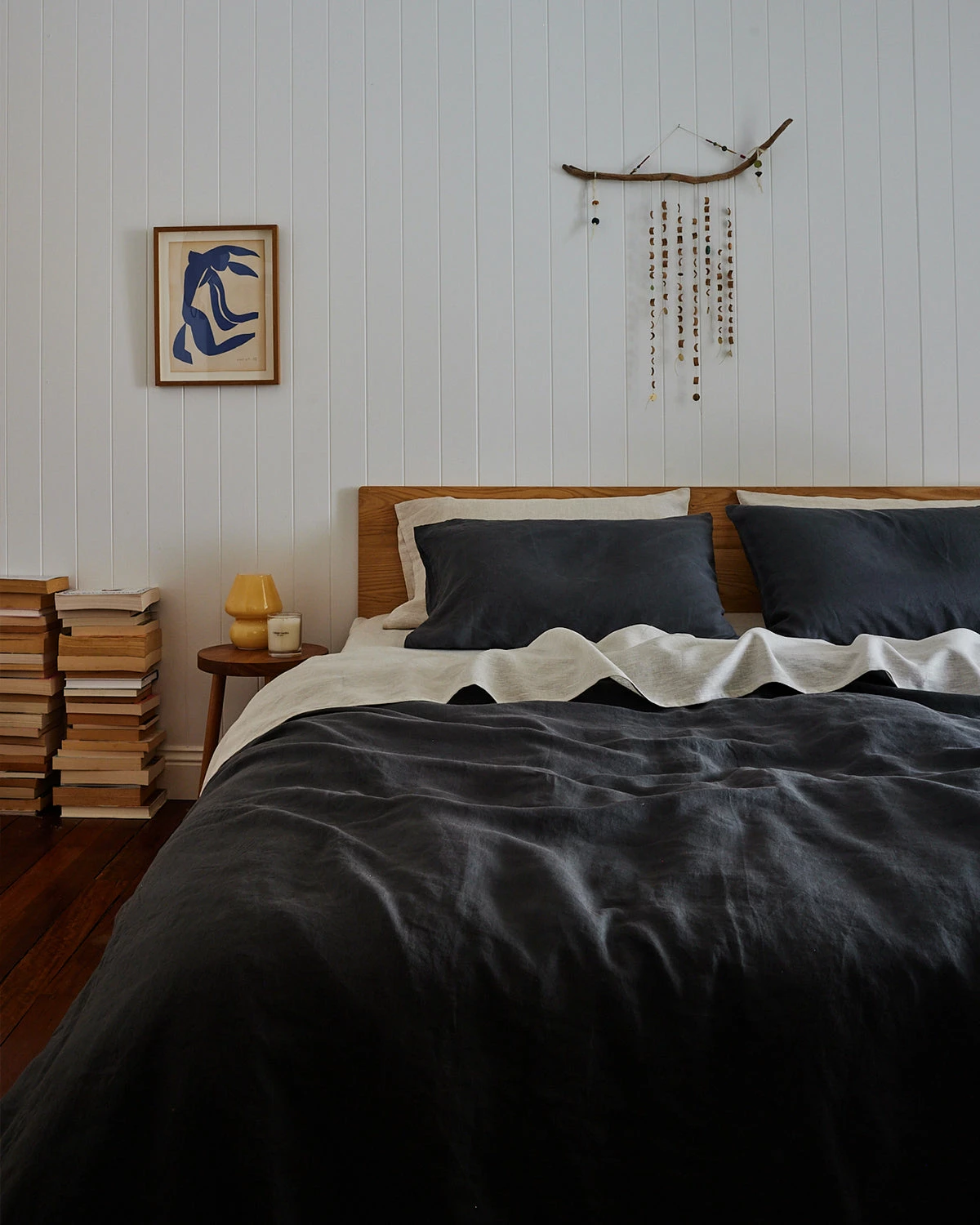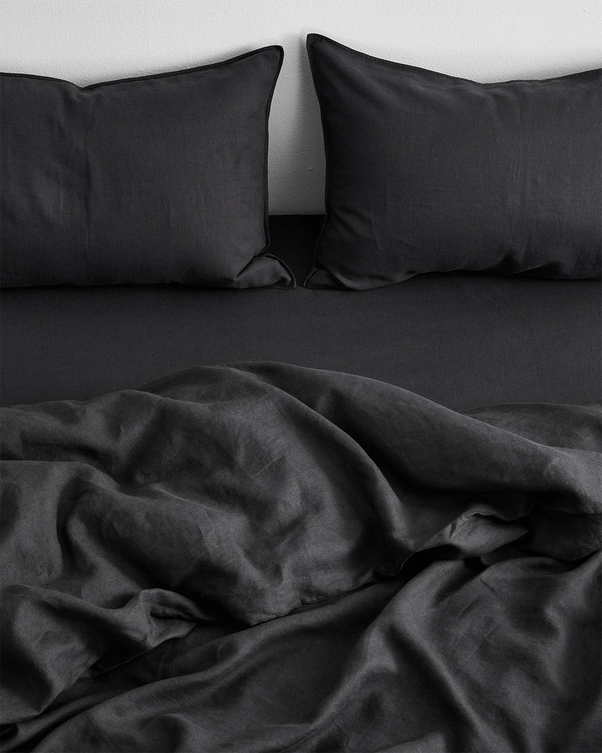 Natural, breathable and buttery soft, our 100% French flax linen pillowcases in Charcoal are pure everyday luxury. This set of two standard size pillowcases features an envelope opening to snugly secure your insert, so you can enjoy plump and protected pillows every time your head hits the them.