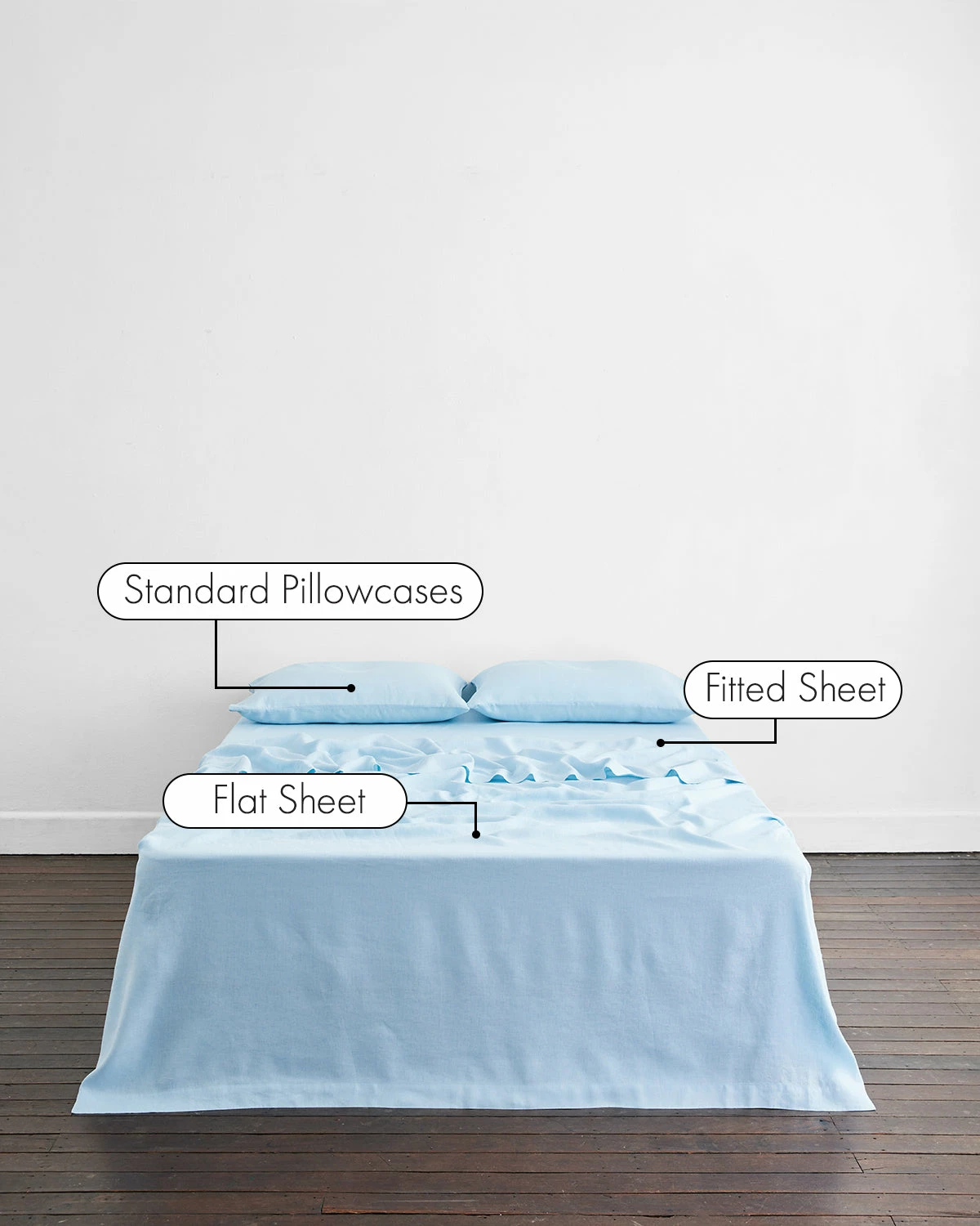 Buttery soft, pre-washed and designed to last, our 100% French flax linen sheet set inCoast includes two pillowcases, a flat sheet and a fitted sheet. Perfect for those who prefer to sleep without a duvet cover, or simply love a layered linen-clad bed.