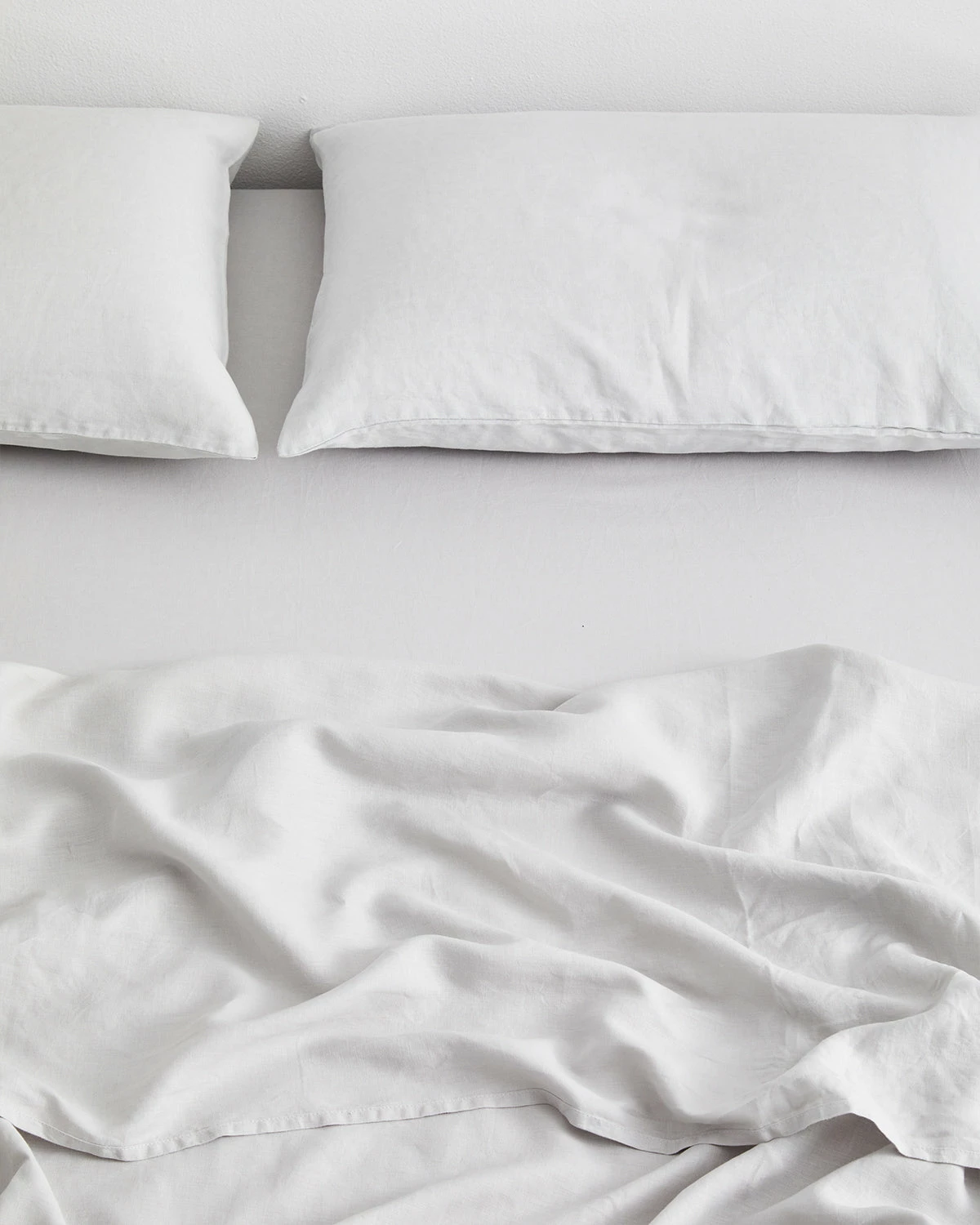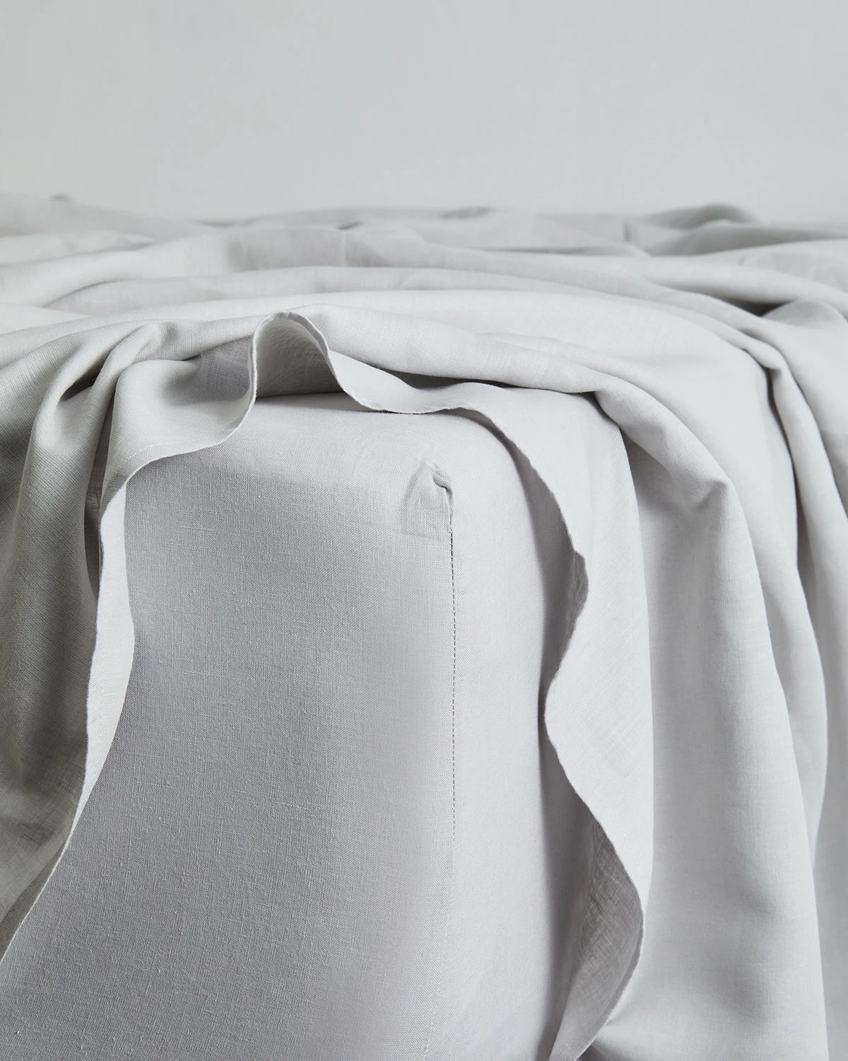 Ultra soft and incredibly durable, our 100% French flax linen fitted sheet in Fog is the foundation for a beautifully made bed. With a generous fit that snugly hugs every corner, this modern heirloom is made to keep.