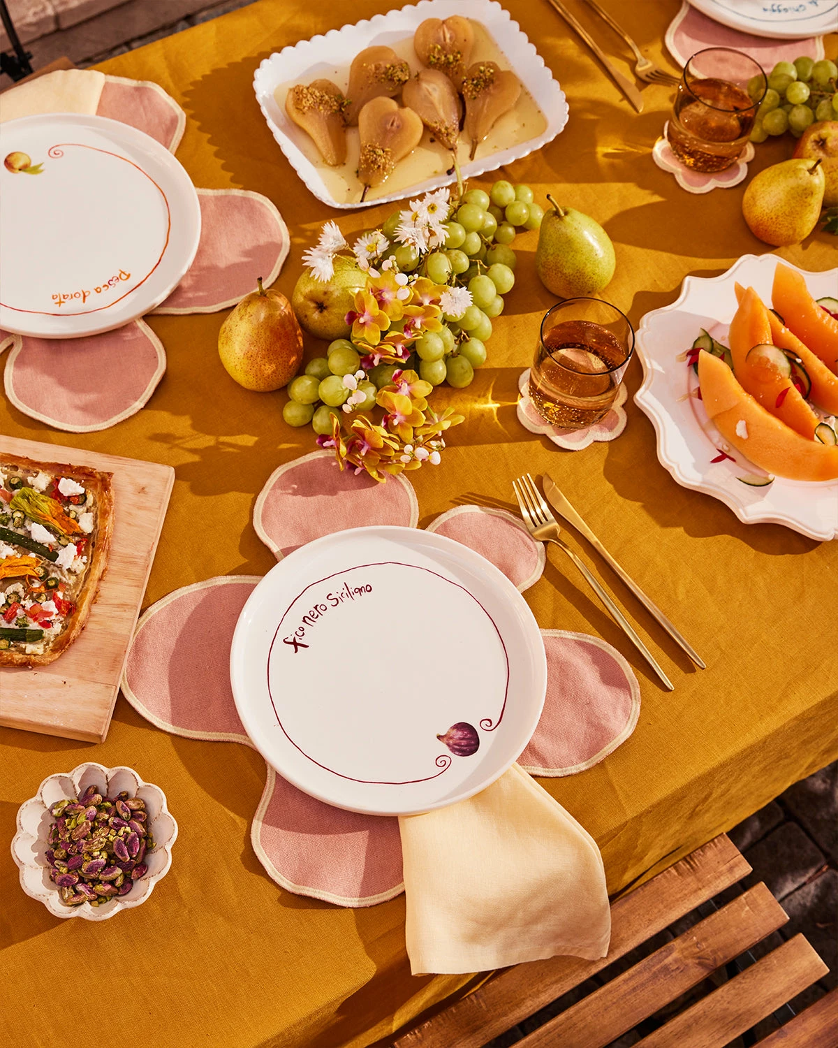 Fresh, plump and deliciously sweet, there’s something about figs that captures the imagination. The black Sicilian variety, in particular, was the muse for this Gemma Bamforth x Bed Threads dinner plate, featuring a ready-to-eat fig surrounded by a hand-drawn border and script in a matching deep purple hue. Collect all six Gemma Bamforth x Bed Threads plate designs for an effortlessly elegant dinner setting.