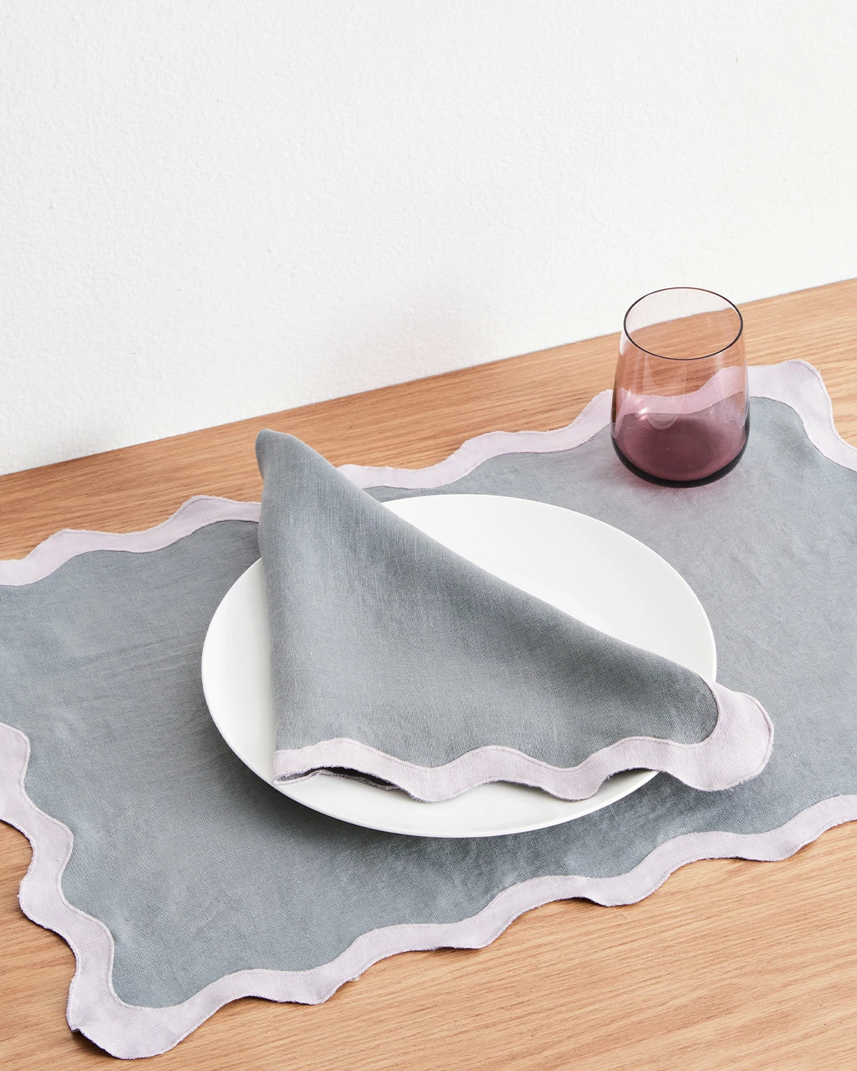 Make your meals extra special with our fresh Scalloped Napkins in contrasting shades of 100% French flax linen. If you love our classic napkins, youre going to be obsessed with these two-toned sets, trimmed with a scalloped edge and inspired by Jean Royre curves. Mix and match this set of four napkins with our scalloped placemats for the ultimate tablescape, every time you put on a spread.