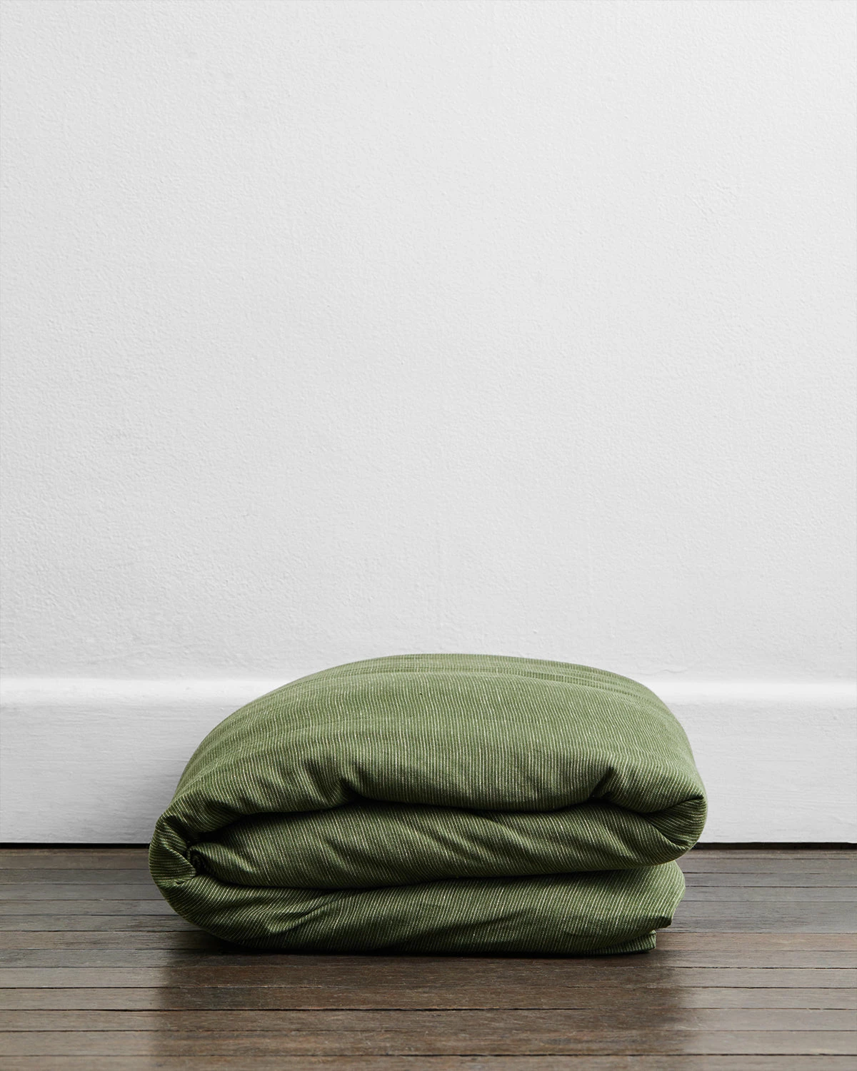 Make your bed look as good as it feels with our 100% French flax linen duvet cover in Olive Stripe. Complete with button closures to keep your insert nice and snug, this duvet cover is as easy to care for as it is to sleep in.