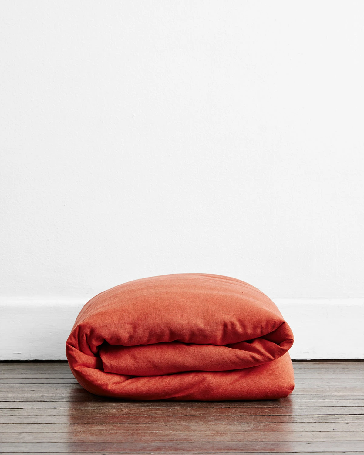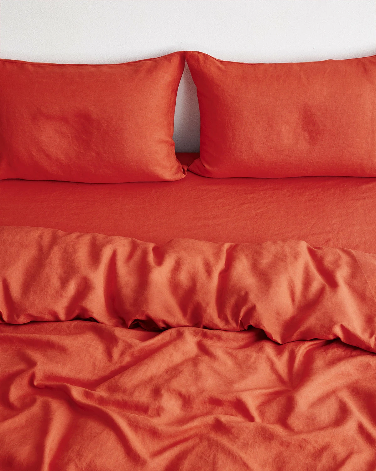Make your bed look as good as it feels with our 100% French flax linen duvet cover in Paprika. Complete with button closures to keep your insert nice and snug, this duvet cover is as easy to care for as it is to sleep in.