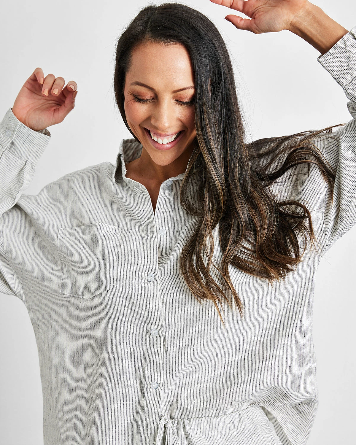With a classic design and relaxed fit, our 100% French flax Linen Long Sleeve Shirt is a piece for your forever wardrobe. Featuring a button-down front, double pockets at the breast, and a button closure at the wrist, its a timeless style that will get you through season after season in ultimate comfort. Versatile and simple, this shirt can just as easily be seen at the beach or in the office, as it can beneath the sheets.