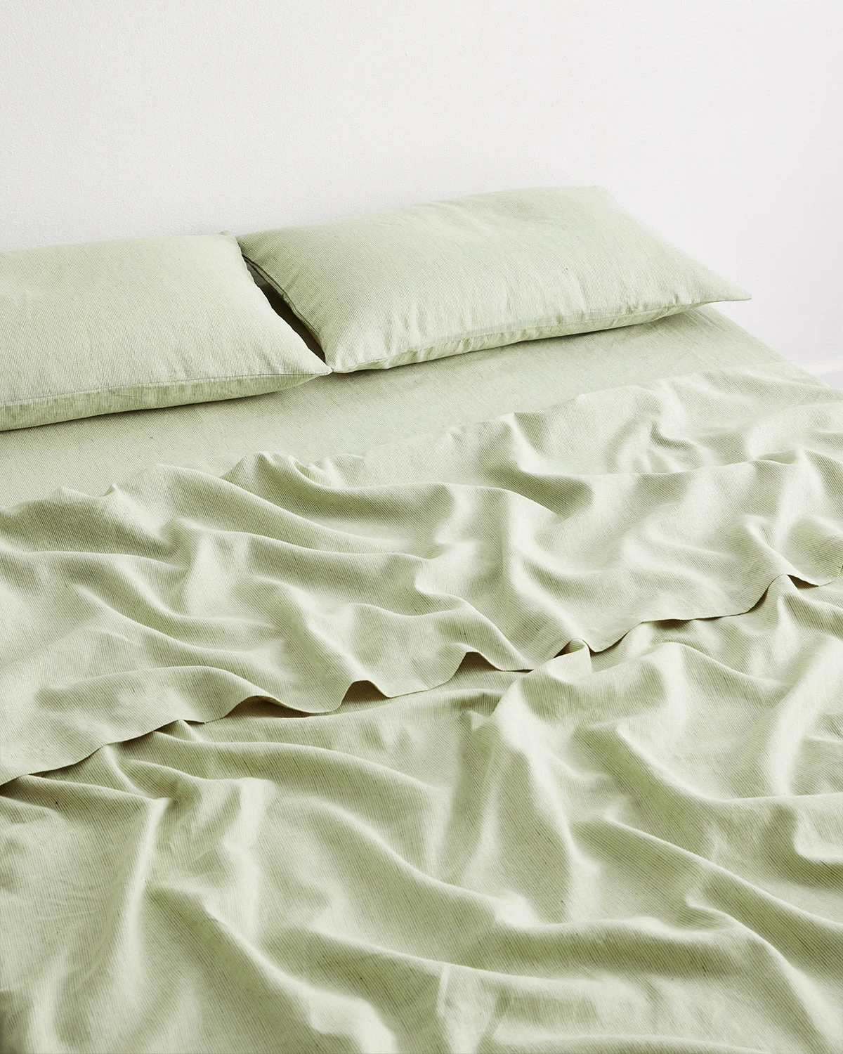 Ultra soft and incredibly durable, our 100% French flax linen flat sheet in Sage & Olive Stripe is a versatile addition to your collection. Generously sized to just graze the floor, these sheets serve as lightweight covers on their own, or as a luxurious extra layer alongside other linen pieces.
