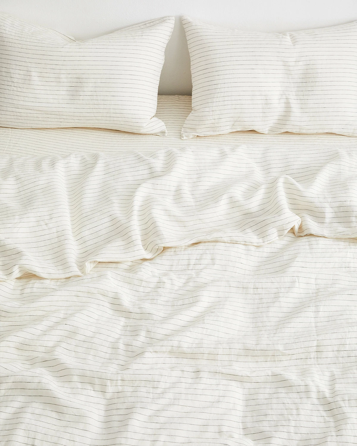 Make your bed look as good as it feels with our 100% French flax linen duvet cover in Stripe. Complete with button closures to keep your insert nice and snug, this duvet cover is as easy to care for as it is to sleep in.