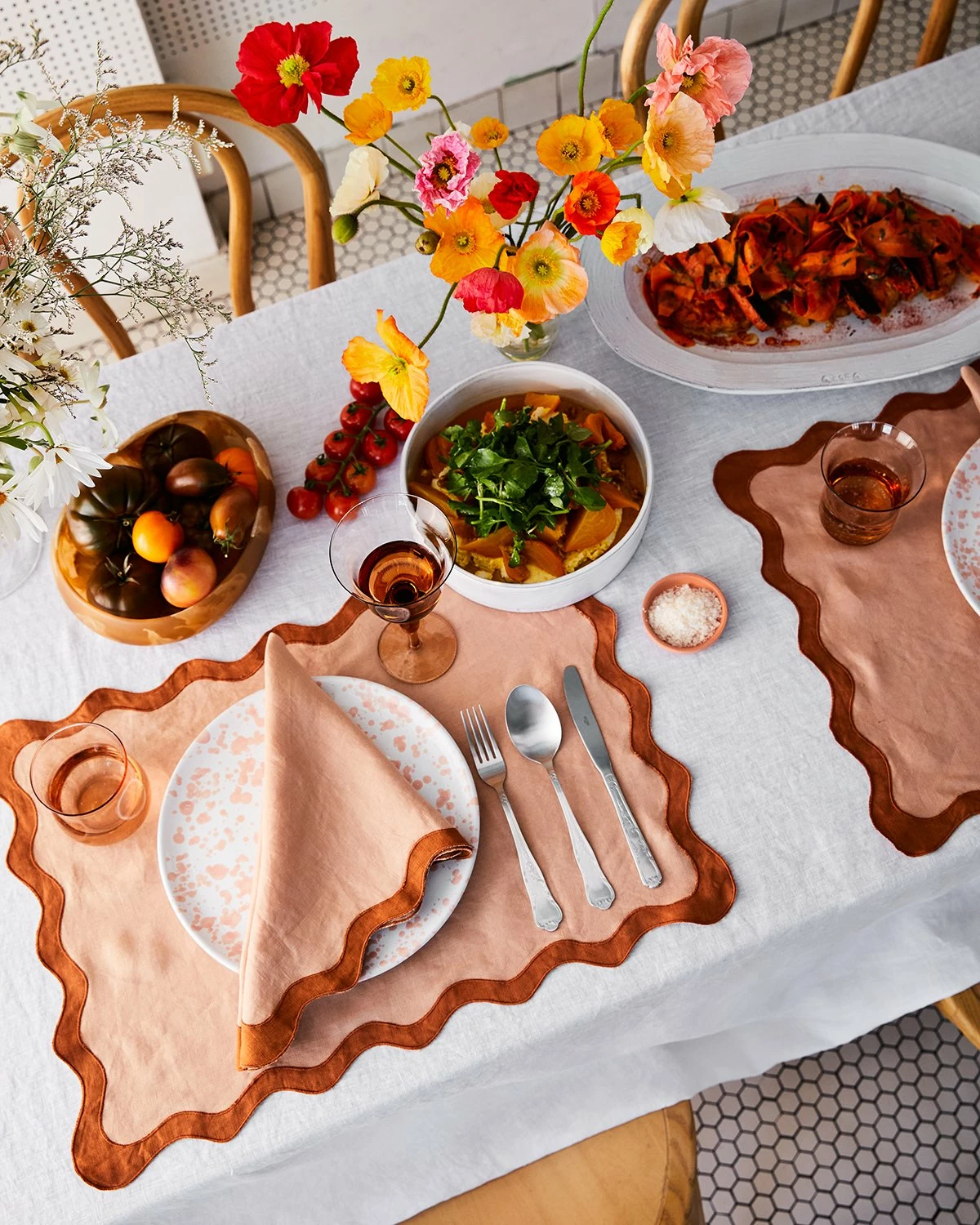 Meet our 100% French flax linen Scalloped Placemats, trimmed with a delicately curved edge in a contrasting shade. Inspired by Jean Royre curves, these conversation-starters are the perfect guest at any dinner, and bring life to the party. Theyre the perfect housewarming gift, or best kept for yourself as a reminder to always set the table, even if youre making dinner for one.