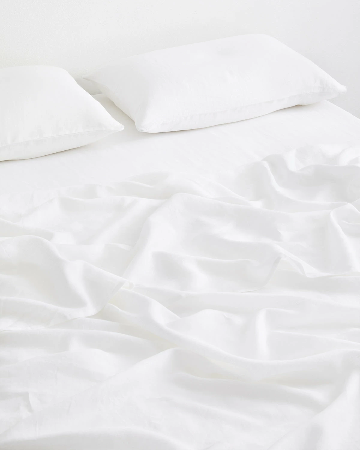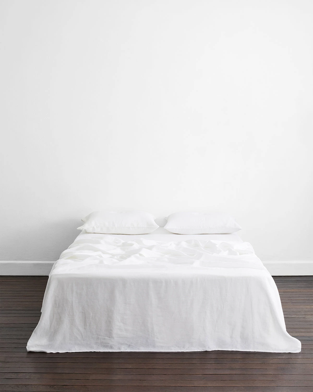 Ultra soft and incredibly durable, our 100% French flax linen flat sheet in White is a versatile addition to your collection. Generously sized to just graze the floor, these sheets serve as lightweight covers on their own, or as a luxurious extra layer alongside other linen pieces.